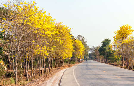 Ratchaphruek or Multiply flowers, Cassia fistula L. or golden shower are blooming on the tree. Tropical yellow flowers that bloom in summer. Symbol of Songkran Festival.
