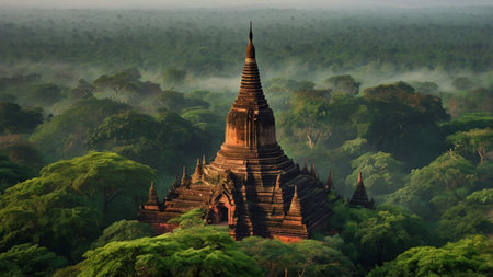 Ancient pagoda, spirituality, and indigenous culture unite generated by artificial intelligence