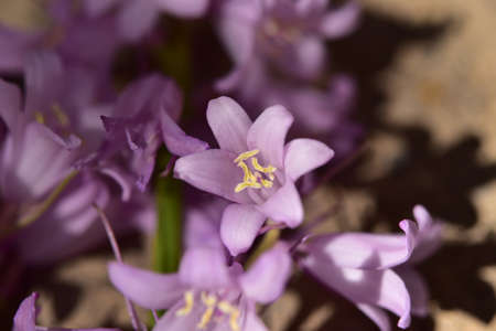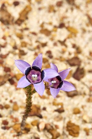 Pink wild bellflower on grainy sand. Shot in Western Cape, South Africa.