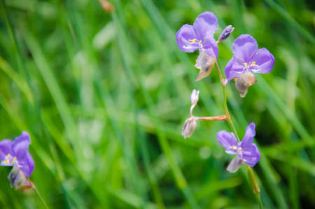 Murdannia giganteum on blurry background is a small purple wildflowers in Thailand.