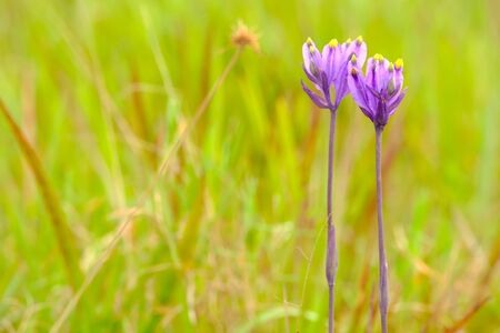Blue dicks wildflowers growing on the hillside in the Merced River Canyon. California.