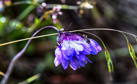 A macro shot of Blue Dicks, also know as wild hyacinth with insects crawling on them.