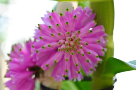 Beautiful picture of an amazing white and pink little Orchid. Picture taken on an afternoon at an event of Orchid Cultivators in Brazil. Close-up photography. Macro Lens.