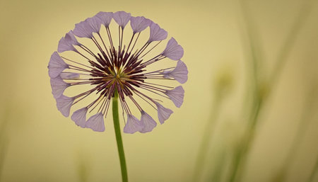 In a tranquil meadow during sunset, a striking purple wildflower stands tall, showing its vibrant petals and captivating details against a soft background.