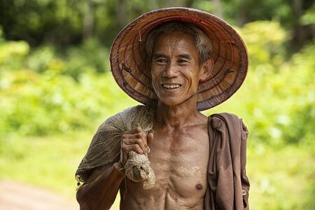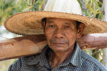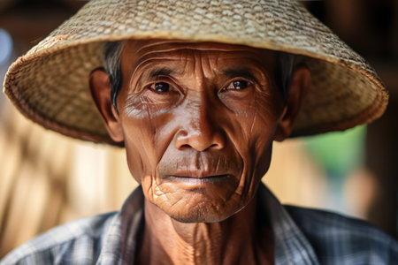 Portrait of a senior Vietnamese man wearing a straw hat and smiling