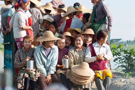 NYAUNG SHWE, MYANMAR - MAY 7 - Locals set out for work in the morning on May 7, 2012 in Nyaung Shwe, Mynmar The town serves as the trading spot and the tourist hub for visiting Inle Lake