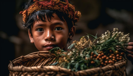 an ethnic woman wearing a traditional headdress, created with generative ai