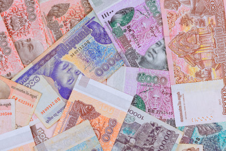 ANGKOR WAT, KRONG SIEM REAP, SIEM REAP, CAMBODIA-JANUARY 5, 2015: An unidentified old buddhist female monk dressed in yellow toga holding Cambodian money at Angkor Wat temple.