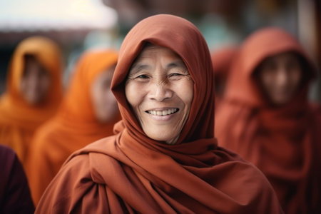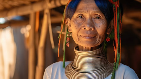 ethnic woman face culture asian female tribe portrait old traditional smile. Generative AI.