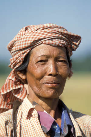 a Khmer women at a Rice field and rice Harvest near the city of Phnom Penh of Cambodia. Cambodia, Phnom Penh, February, 2001