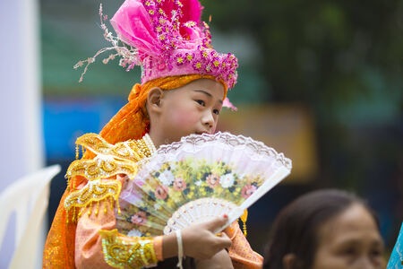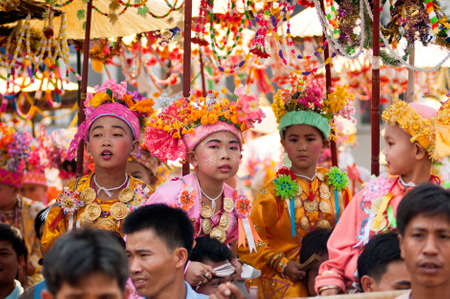 MAE HONG SORN, THAILAND - APR 6: Unidentified boys dressed in ornate costumes and heavy make-up in a Buddhist novice ordination ceremony on Apr 6, 2008 in Mae Hong Sorn, Thailand. The festival, associated with the Tai Yai or Shan people is known for its