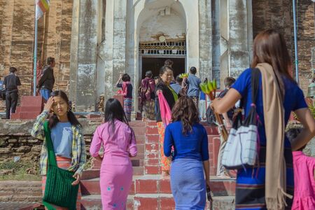 BAGAN-Myanmar, January 21, 2019 : Unidentified tourists make merit and photographing at Shwezigon Pagoda on january 21, 019 in Bagan, Myanmar.