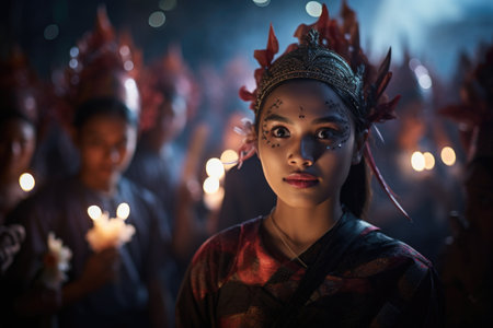 Colorful traditional festival celebrates cultures with young woman generated by artificial intelligence