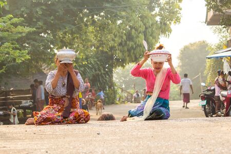 Bagan,Myanmar-March 19,2011 : Unidentify Myanmar women and child in Festival Procession, near Heritage Site in Bagan,Myanmar.