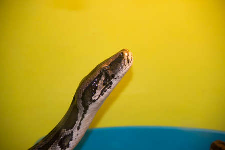 Python. The snake spun. Python is looking into the camera. Big snake. Boa. Boa prepares to jump.