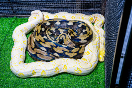 Gold Yellow Python, Albino snake with beautiful yellow skin snake texture close up. Reticulated python is non venomous snake.