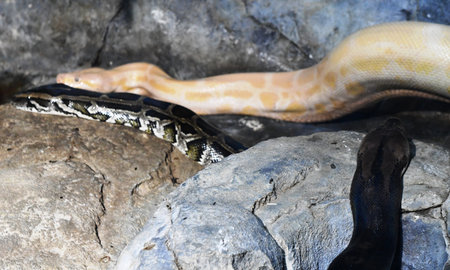 Reticulated python (Python reticulatus) on rock