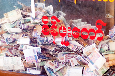 Banknote in golden room at Botataung Pagoda Yangon Myanmar