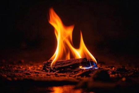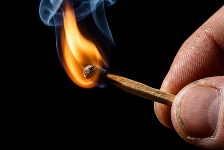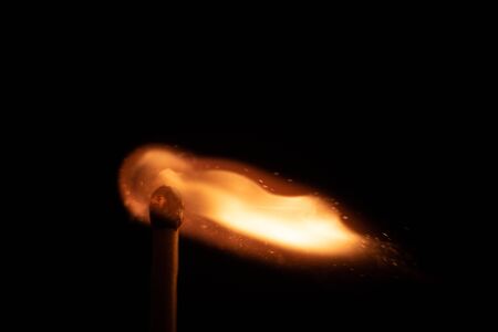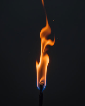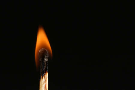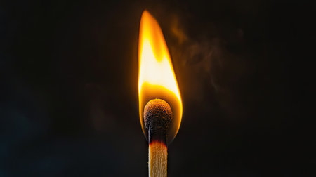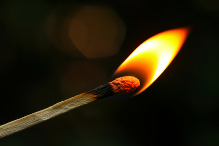 Burning match on a black background, its vibrant orange glow representing warmth, ignition, and potential energy.