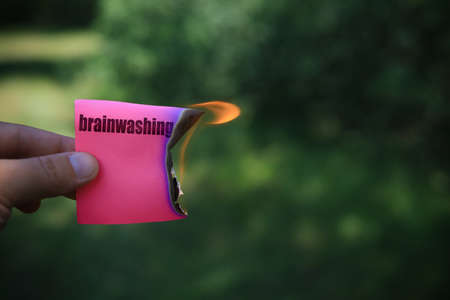 Word or text brainwashing. Burning sticker. Blurred background with vignetting effect.