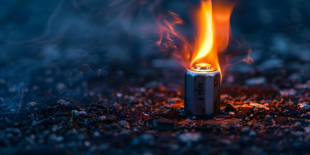 Photo of lithiumion battery fire illustrating safety hazards and risks emphasizing the importance of fire prevention. Concept Fire Safety, Lithium-ion Batteries, Fire Hazards, Risk Prevention