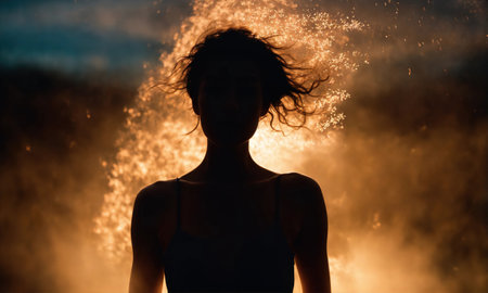 Blurry motion silhouette of a girl with long hair. ai generative.