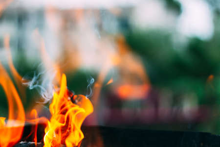 The hottest background. A fire blaze, heat and burning wood close-up.