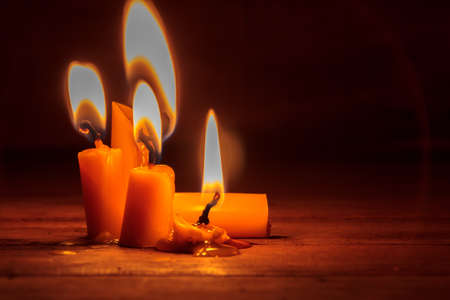 Group of flaming candles on a dark background