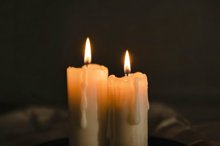 Burning candles on a dark background with warm light