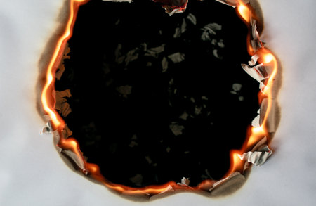 burned hole on a white paper background.