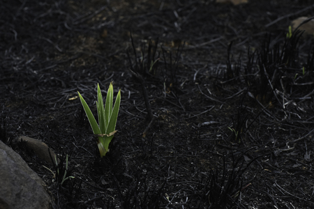 plant grows in burned ash from
