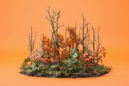 Various terrestrial plants including grasses, flowers, and trees are sprouting from the soil, creating a beautiful landscape in the field