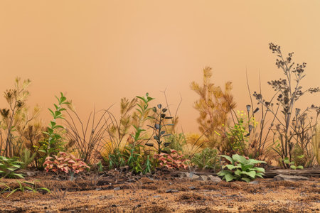 Environmental pollution, germination of grass after a fire, restoration of nature, natural selection.