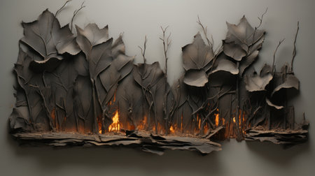 Scorched Earth and Charred Remains After Wildfire, Desolate Landscape with Burnt Flora AI Generative