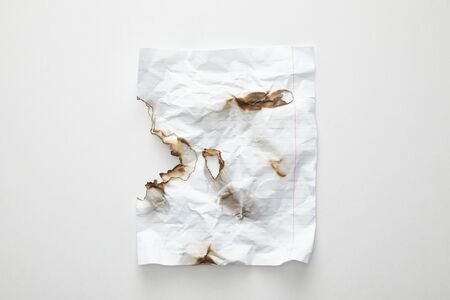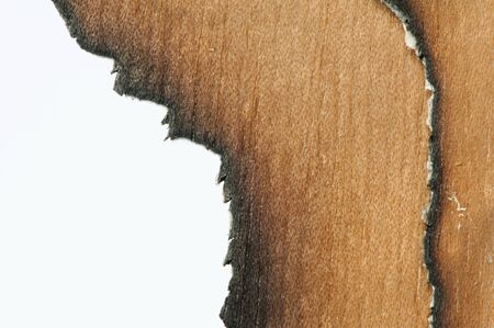 Burnt peice of old paper on a white background. Vintage and retro design photo
