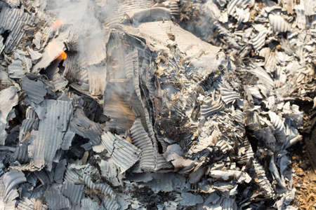 Burning a fire out of paper in an open space. Burning paper waste in residental or industrial environment. Pollution with burning paper.