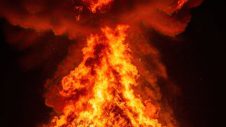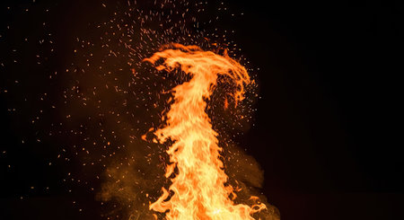 Vibrant fire texture against dark backdrop for striking visual contrast and energy