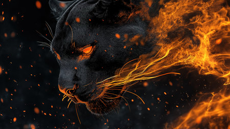 Black panther in fire. 3D illustration of a black panther in fire.