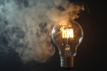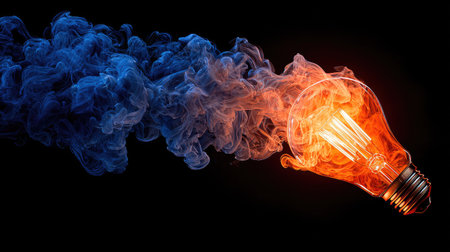 Illuminated ideas a glowing light bulb with smoke symbolizing creative inspiration in business