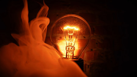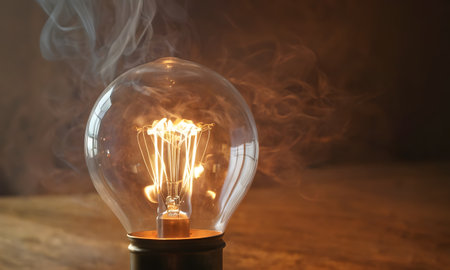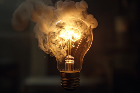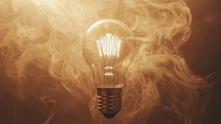 Electric light bulb glowing with smoke a symbol of new ideas and creative inspiration in business