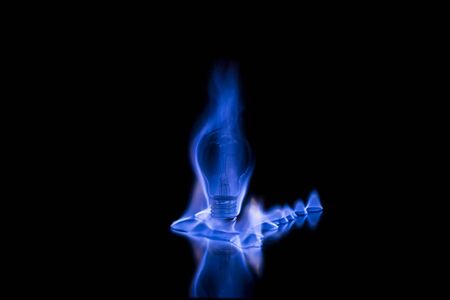 Tungsten bulb on fire isolated on black background