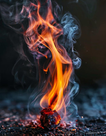 Burning flame with rising smoke on dark background