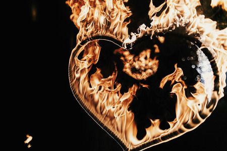 happy valentine's day card.heart shaped firework on black background, fire show in night. bengal fire burning heart. space for text. wedding or valentine concept. happy new year