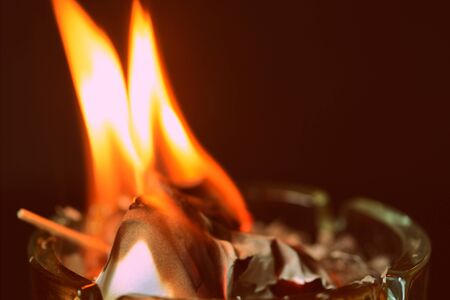 close up macro image of an oil lamp fire flame