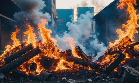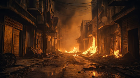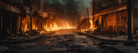 AI Generated. Devastating Urban Fire in a Ruined Cityscape