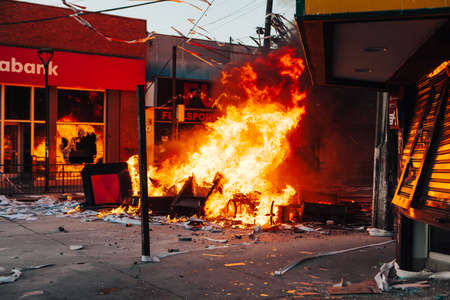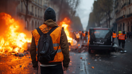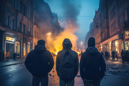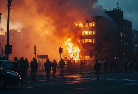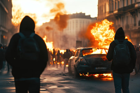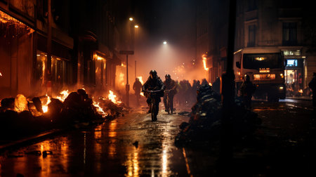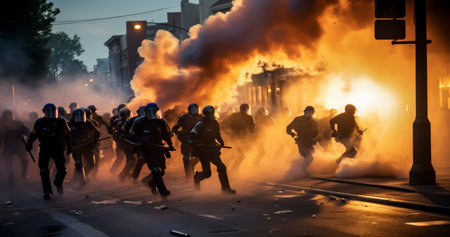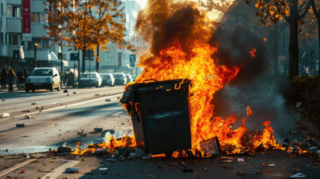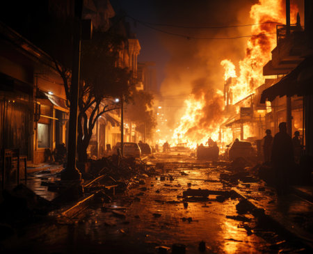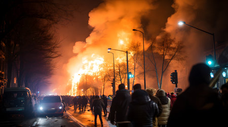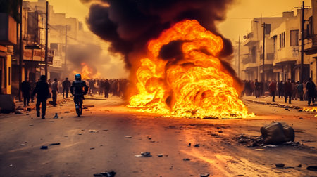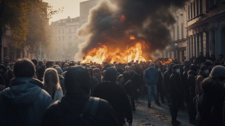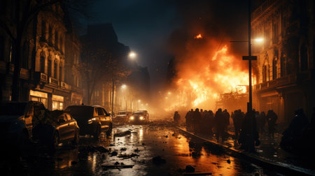 Urban turmoil, street riots civil unrest and societal tensions, chaos and intensity of public protest and demonstration in the heart of the city