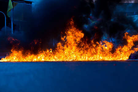 Flame of fire on the road at night. Abstract background.