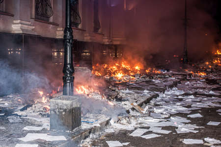 Ternopil, Ukraine - 18.02.2014 - Burning documents lie on a burning pile