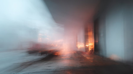 An artistic interpretation of a rainy urban night, blending vibrant lights and reflections through motion blur to create a dreamlike and atmospheric experience.