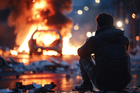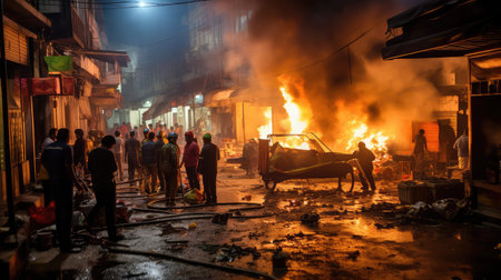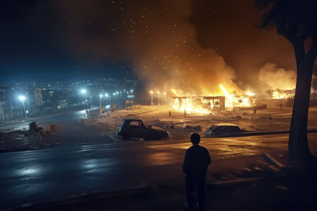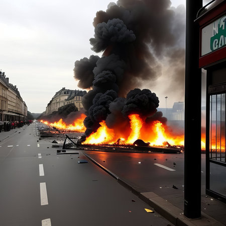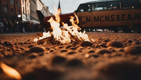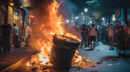 Fire and anarchy during the rally. Generative AI illustrator